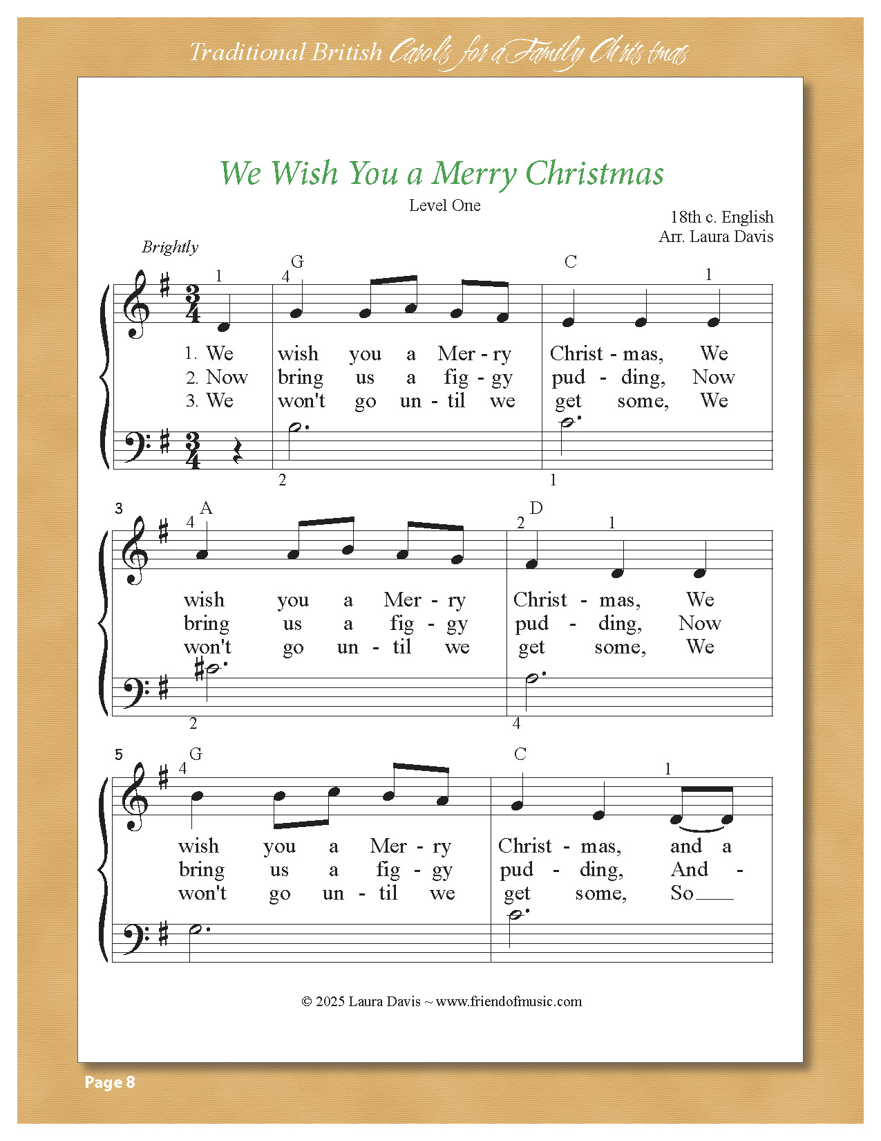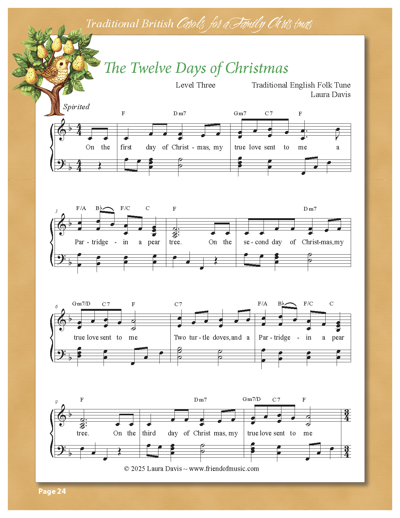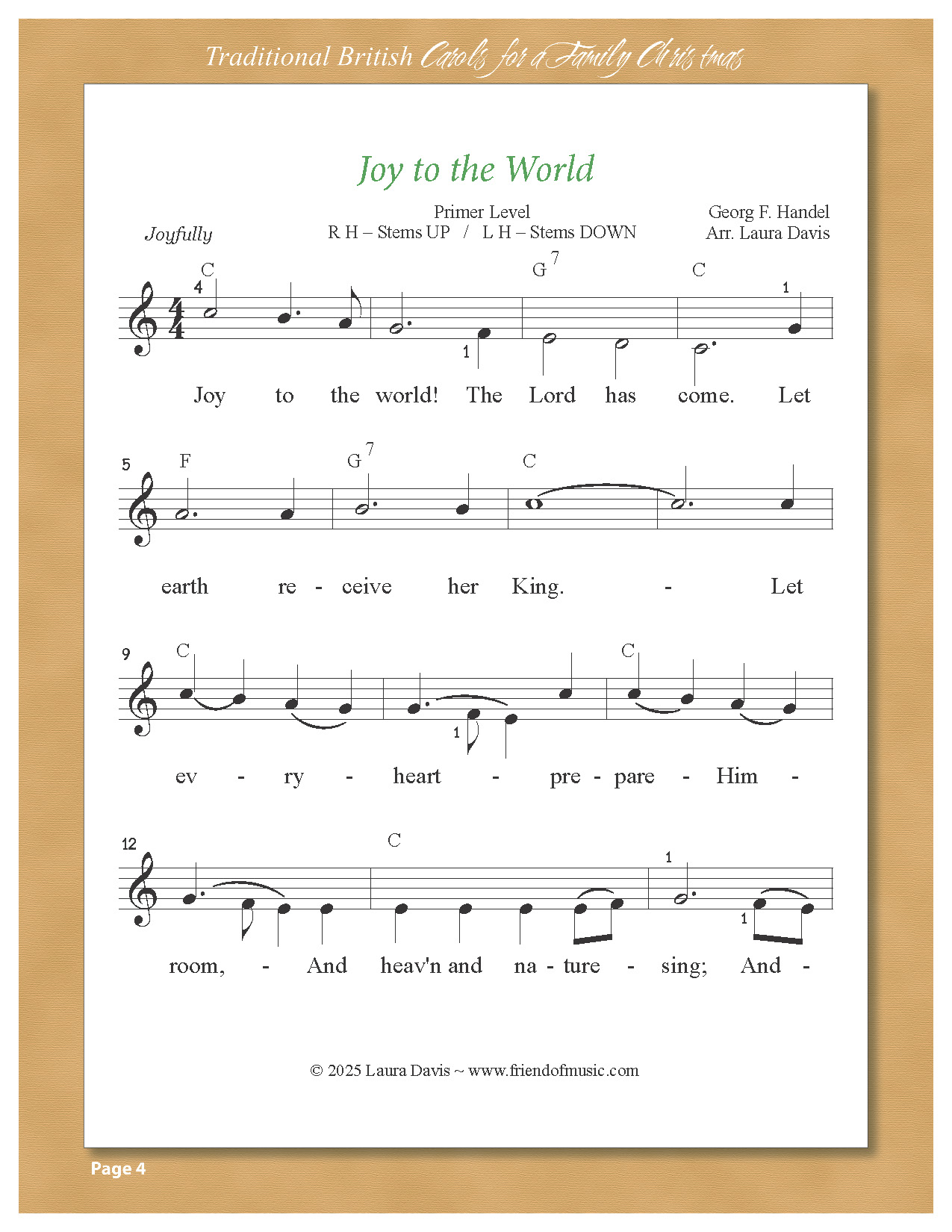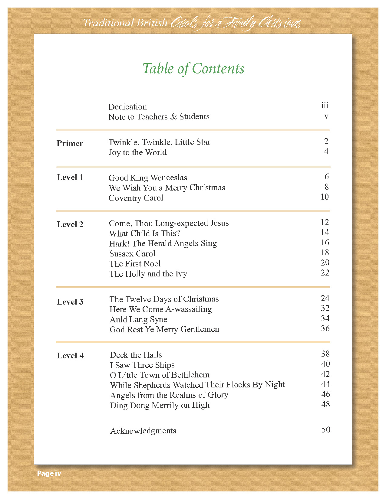 New beginners will quickly learn the first “one-finger” arrangements. Enjoy different carols each year, as you make progress in your piano skills. No need to buy a new book every year.